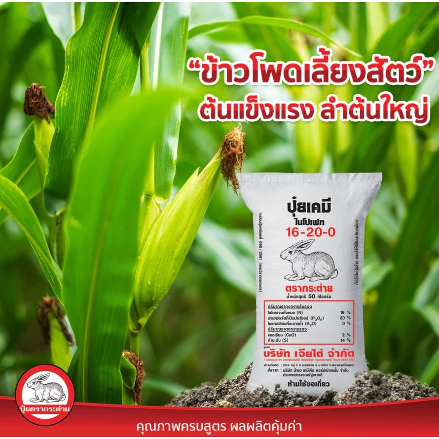 ปุ๋ยเคมีกระต่าย สูตร 16-20-0 แบ่งขายเป็นกิโล เร่งต้น เร่งดอก เร่งใบ ช่วยการแตกกอ พืชไร่ รองพิ้นข้าวโพด ราคา 38 ฿. (4.8) อัพเดทล่าสุด 18/04/2026 06:00